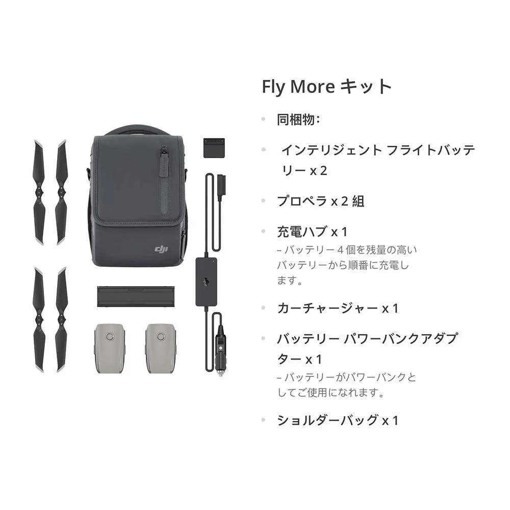 Mavic 2 Fly Moreキットには、インテリジェント フライトバッテリー x 2/Mavic 2 カーチャージャー x 1/バッテリー充電ハブ x 1/バッテリー - パワーバンク アダプター x 1/低ノイズプロペラ x 2組/Mavic 2 ショルダーバッグ x 1が含まれており、撮影を総合的にサポートします。